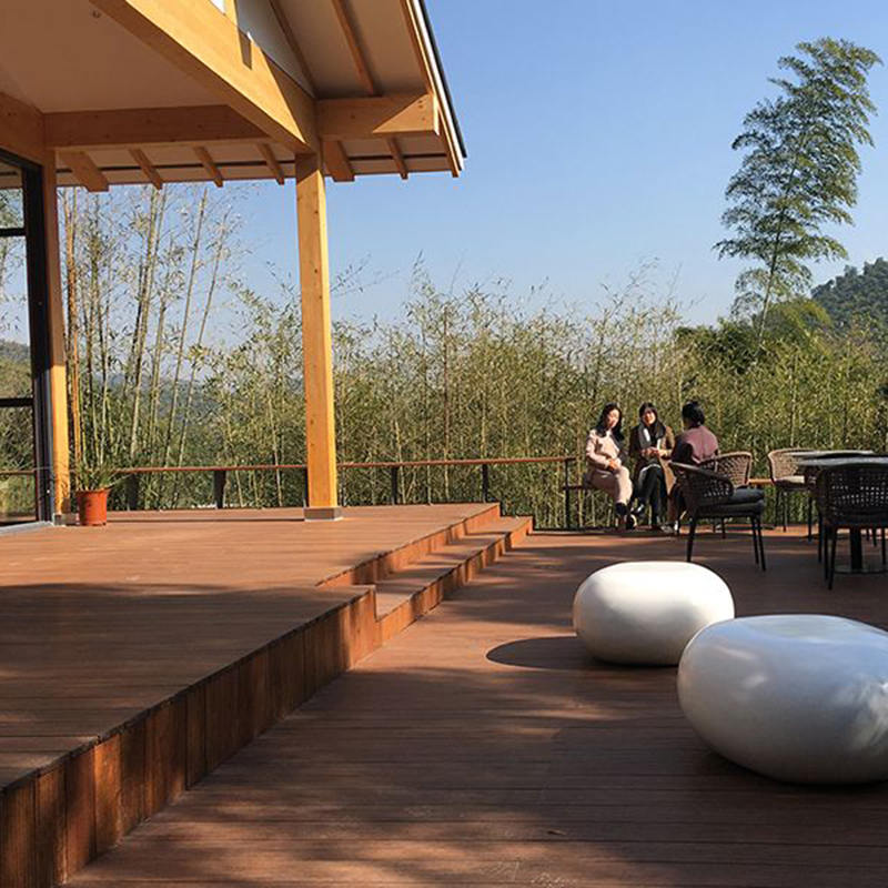 พื้นไม้ไผ่กลางแจ้งใน Chaoshan Resort