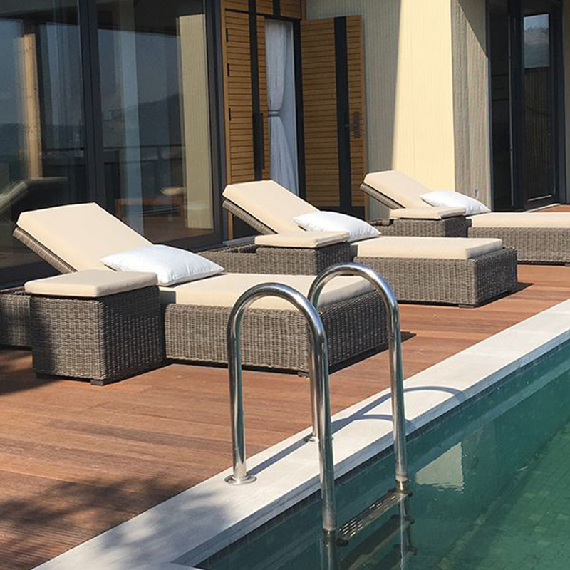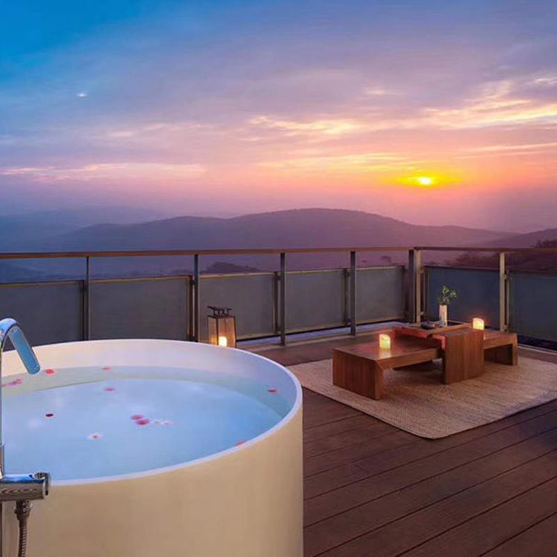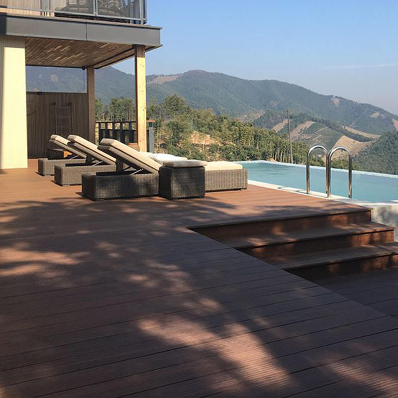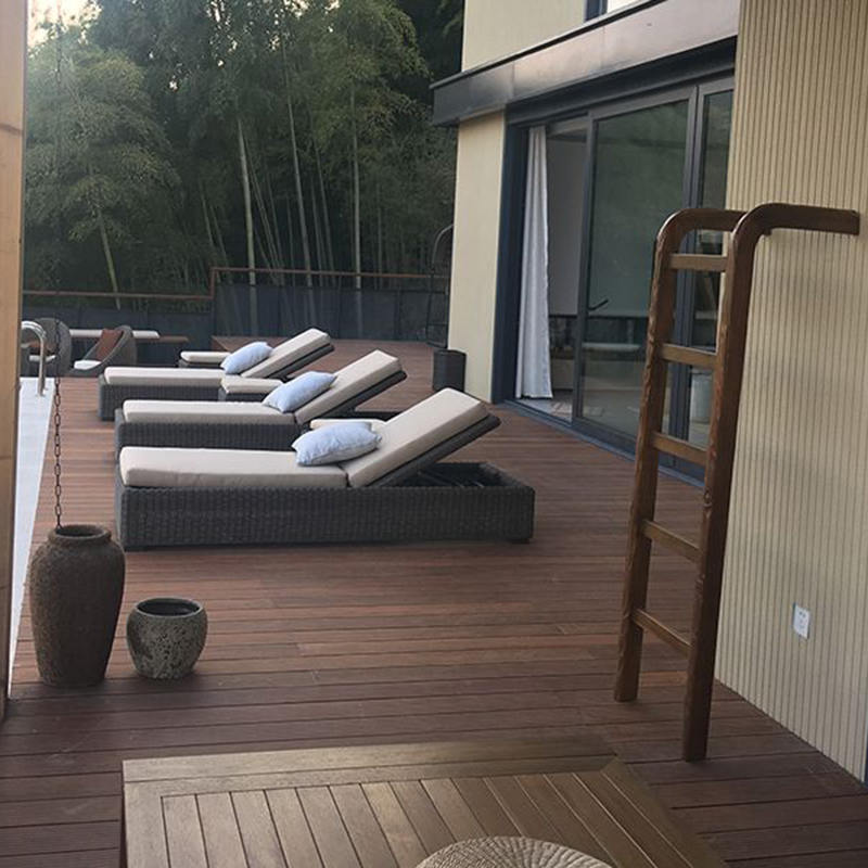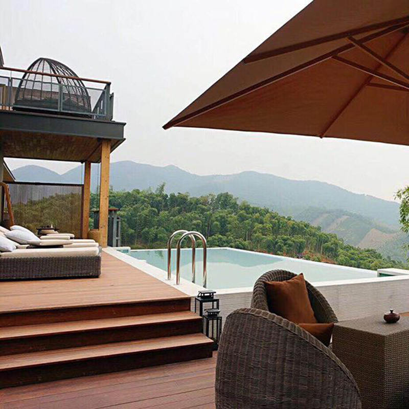 พื้นไม้ไผ่กลางแจ้งริมสระว่ายน้ำในหูโจว