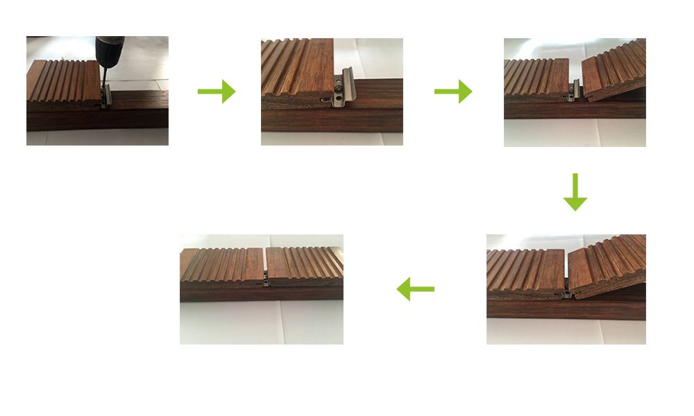 2. การปูพื้นระเบียง: ชั้นแรกของการติดตั้งด้านเริ่มต้นด้วยสกรูยึดโดยตรงบนกระดูกงูหลังจากที่ติดกันสองระหว่างพื้นโดยมีตัวยึดพิเศษแทรกเข้าไปในพื้นทั้งสองด้านของร่อง